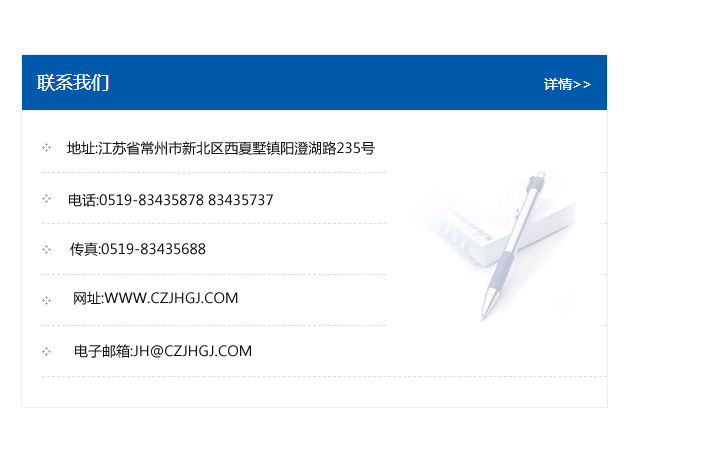 傳真:0519-83435688    郵編:213135    網址:WWW.czjhgj_com.sxxhat.com    電子郵箱:JH@czjhgj_com.sxxhat.com
